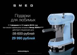 В различные периоды времени на официальном сайте нашего интернет-магазина фирменной бытовой техники SMEG появляется подробная информация о действующих акциях, скидках и распродажах различных видов бытовой техники Смег. Это позволяет широкому кругу покупателей купить товары бренда Smeg со скидками от первоначальной стоимости в 10-30% и более!