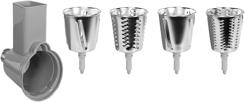 4 барабана из нержавеющей стали для натирания и нарезки: крупная и мелкая терка, средняя и мелкая нарезка (нержавеющая сталь)