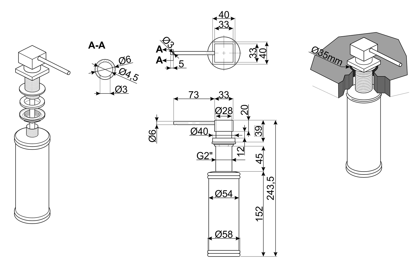 Дозатор для жидкого мыла Smeg KITDSQ квадратный