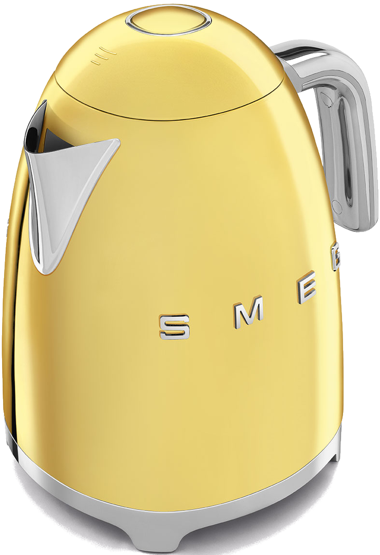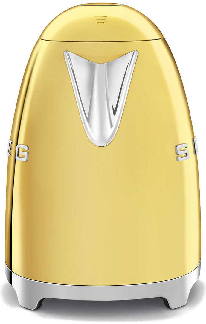 Этот золотой чайник объемом 1,7 л относится к серии бытовой техники в стиле ретро. Такой дизайн со сглаженными линиями, оригинальной ручкой и стильным рычагом включения характерен для 50-х годов прошлого столетия. Стилистика потребовала отказаться от подсветки, но она и не нужна. Зато у вас будет возможность точно отмерить нужное количество воды — у чайника есть индикатор уровня воды. Если вы забудете залить воду, нагрев будет заблокирован, чтобы избежать возгорания.