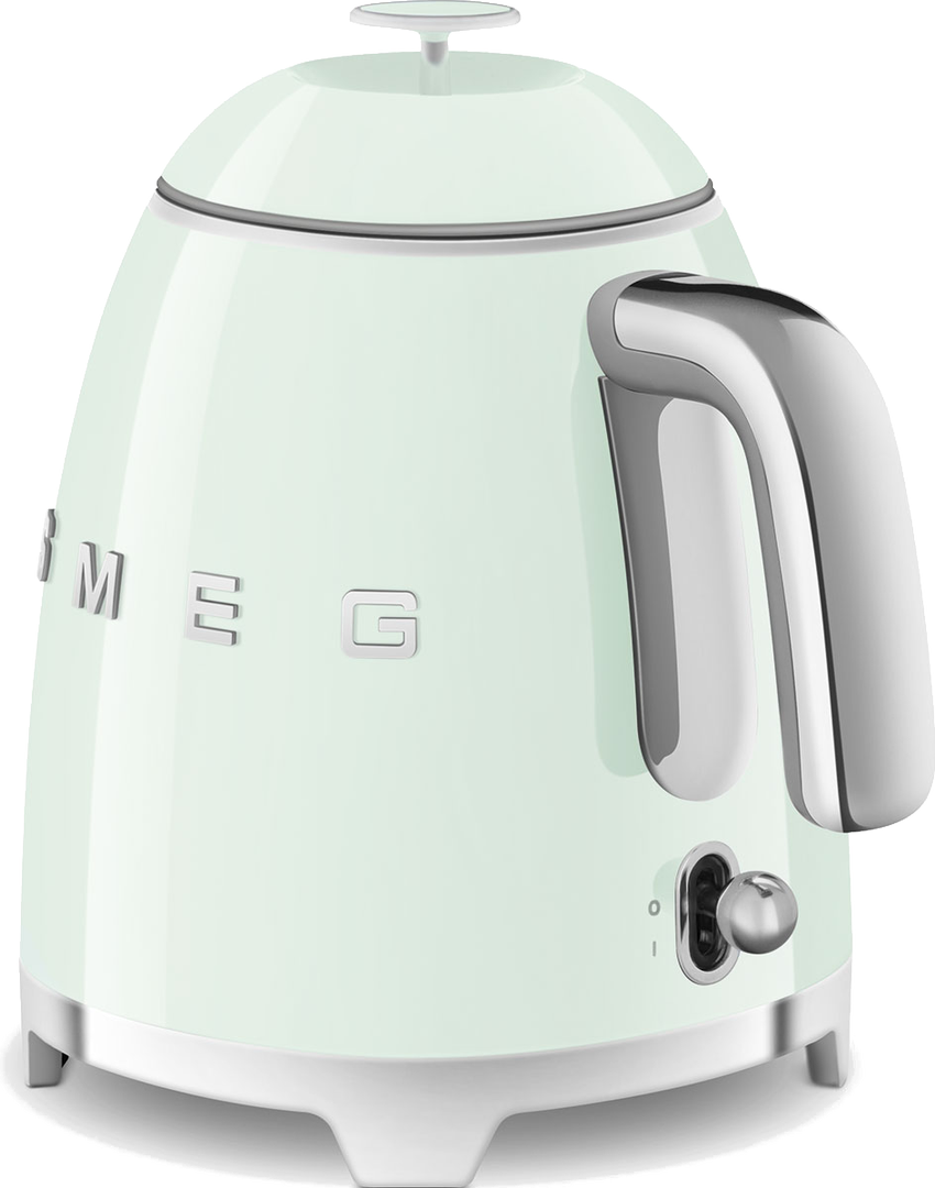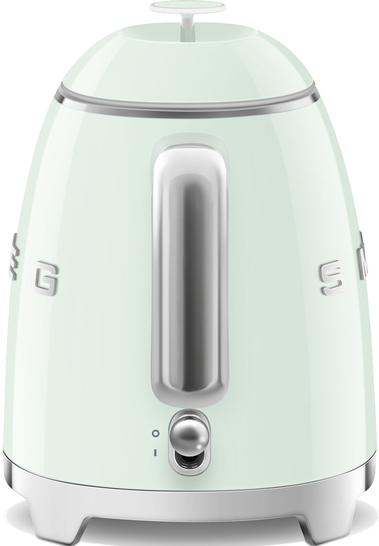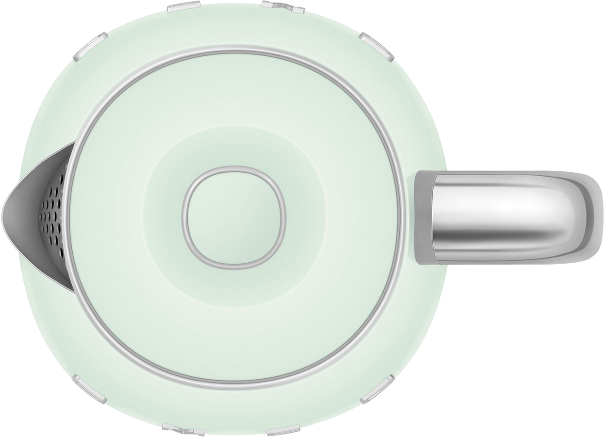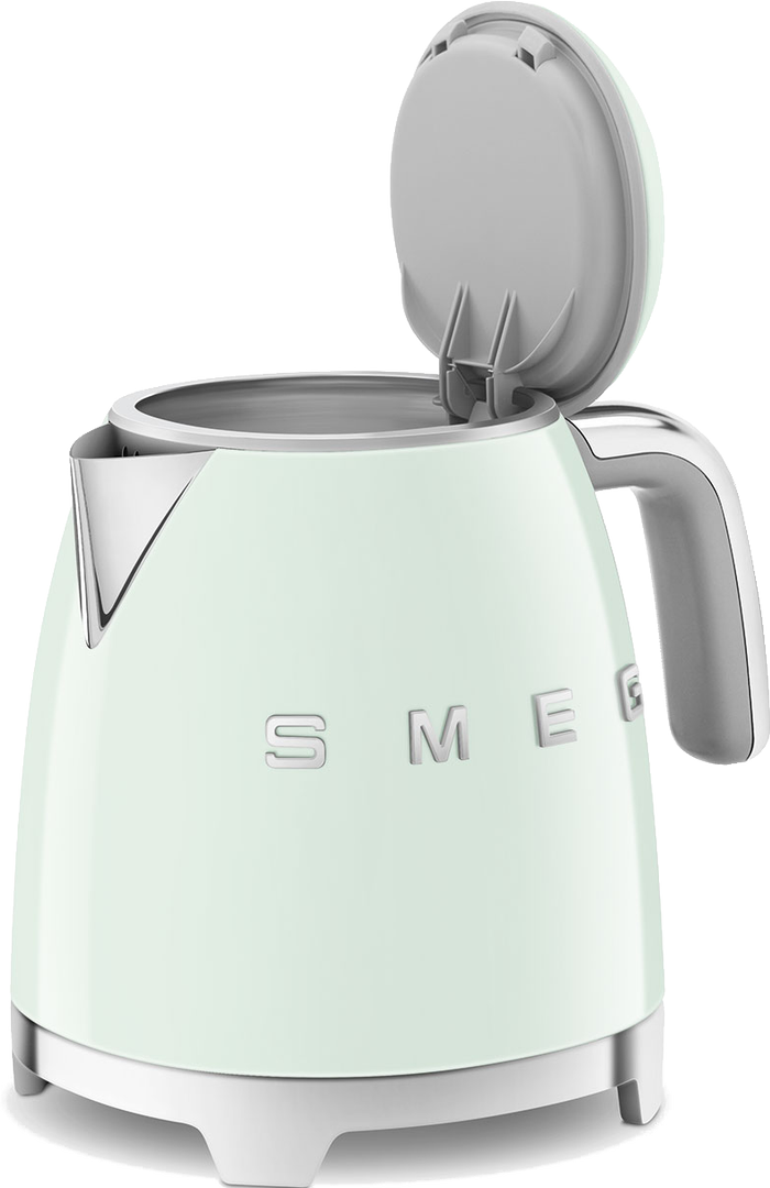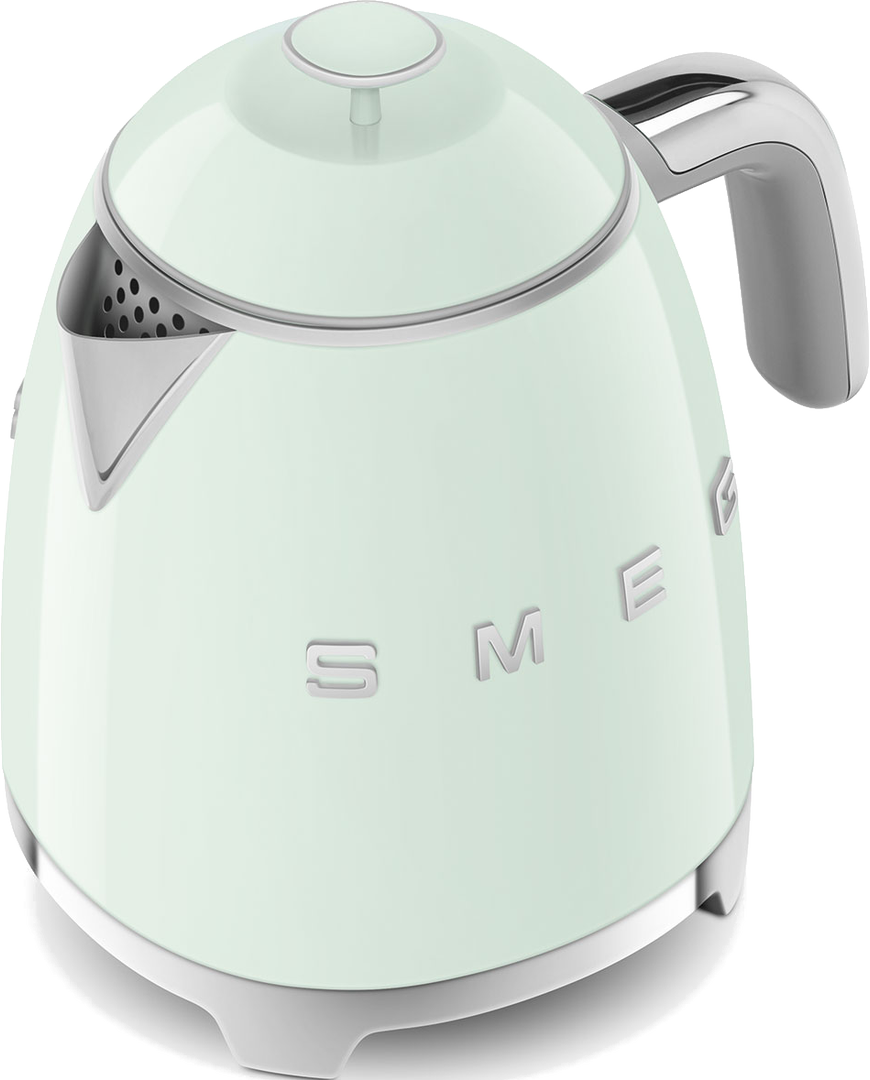 Премиальный электрочайник от итальянского бренда SMEG выпускается в рамках дизайнерской коллекции 50's Retro Style, призванной вернуть пользователя в середину прошлого века, когда на улицах можно было встретить мощные автомобили в ярких расцветках с обилием хромированной фурнитуры. Именно такие особенности имеет данная дизайн коллекция. Чайник выполнен из качественного металла и пластика в цвете "пастельный зеленый" с носиком из полированной нержавеющей стали и хромированной ручкой. На передней части корпуса располагается хромированный логотип SMEG.