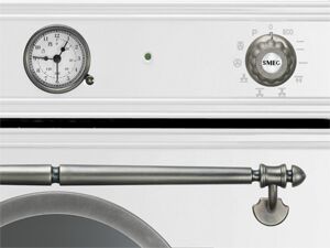 Одними из наиболее популярных духовок в нашем магазине являются модели в белом цвете. Белый - идеальный цвет, который подходит большинству кухонь. Он может гармонично сочетаться со светлыми помещениями или выступать в качестве контрастирующего элемента темной кухни. В любом случае белый духовой шкаф SMEG всегда будет местом привлечения внимания на кухне. В нашем каталоге можно купить белые духовки шириной 60 и высотой 60 см. Они идеально подойдут стандартным ячейкам для бытовой техники. Для управления работой устройств применяются переключатели или сенсорные панели. Многие классические духовки оснащаются элегантным таймером-минутником, которые устанавливается в центре панели управления.