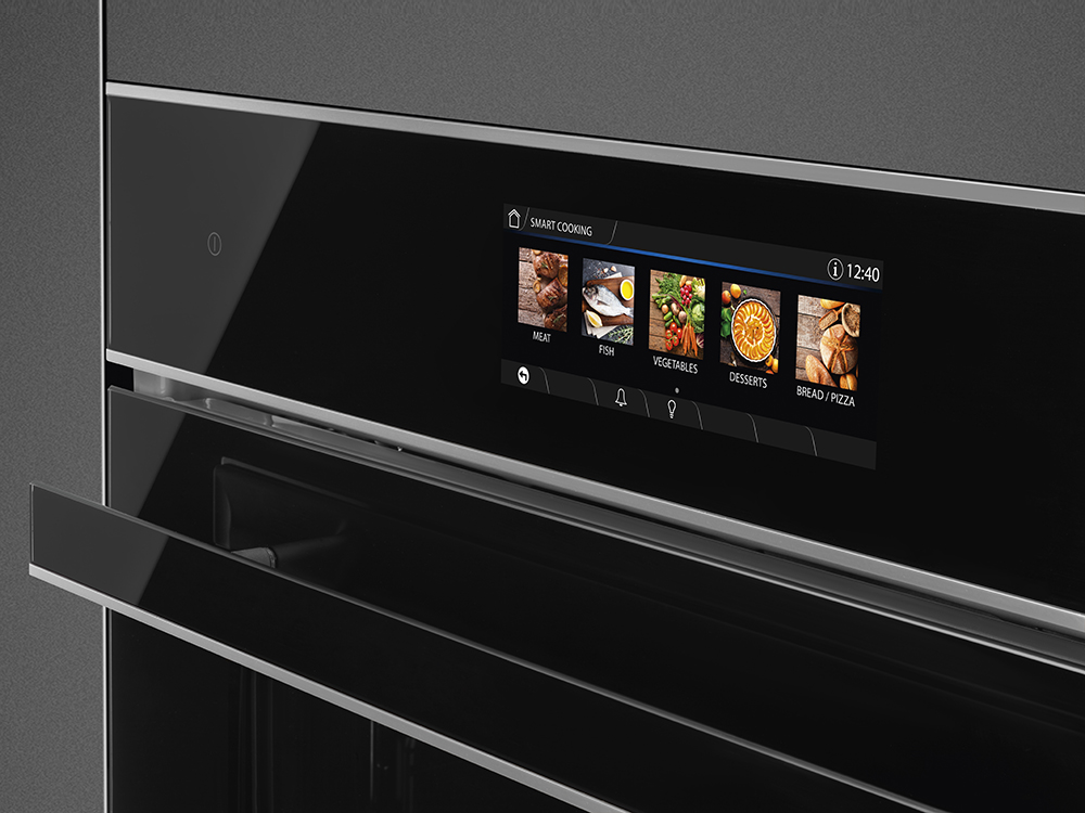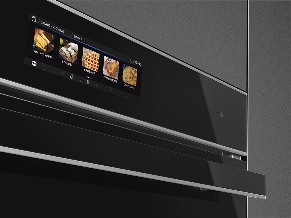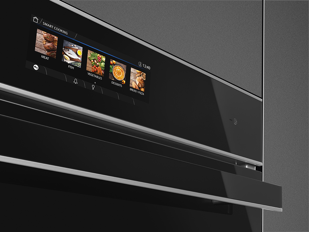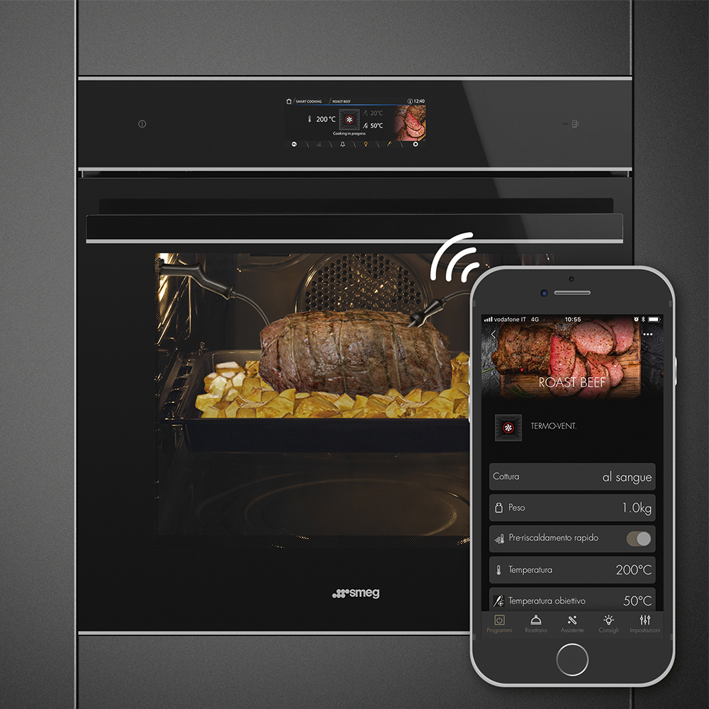 За управление программами и режимами работы отвечает электронный модуль управления Smart Cooking System, оснащенный цветным сенсорным дисплеем. Всего пользователь может активировать 10 режимов работы и 48 автоматических рецептов, которые позволяют готовить популярные блюда различных кухонь мира. Уникальная технология Smeg Connect позволяет управлять шкафом при помощи смартфона, подключенного к сети Интернет.