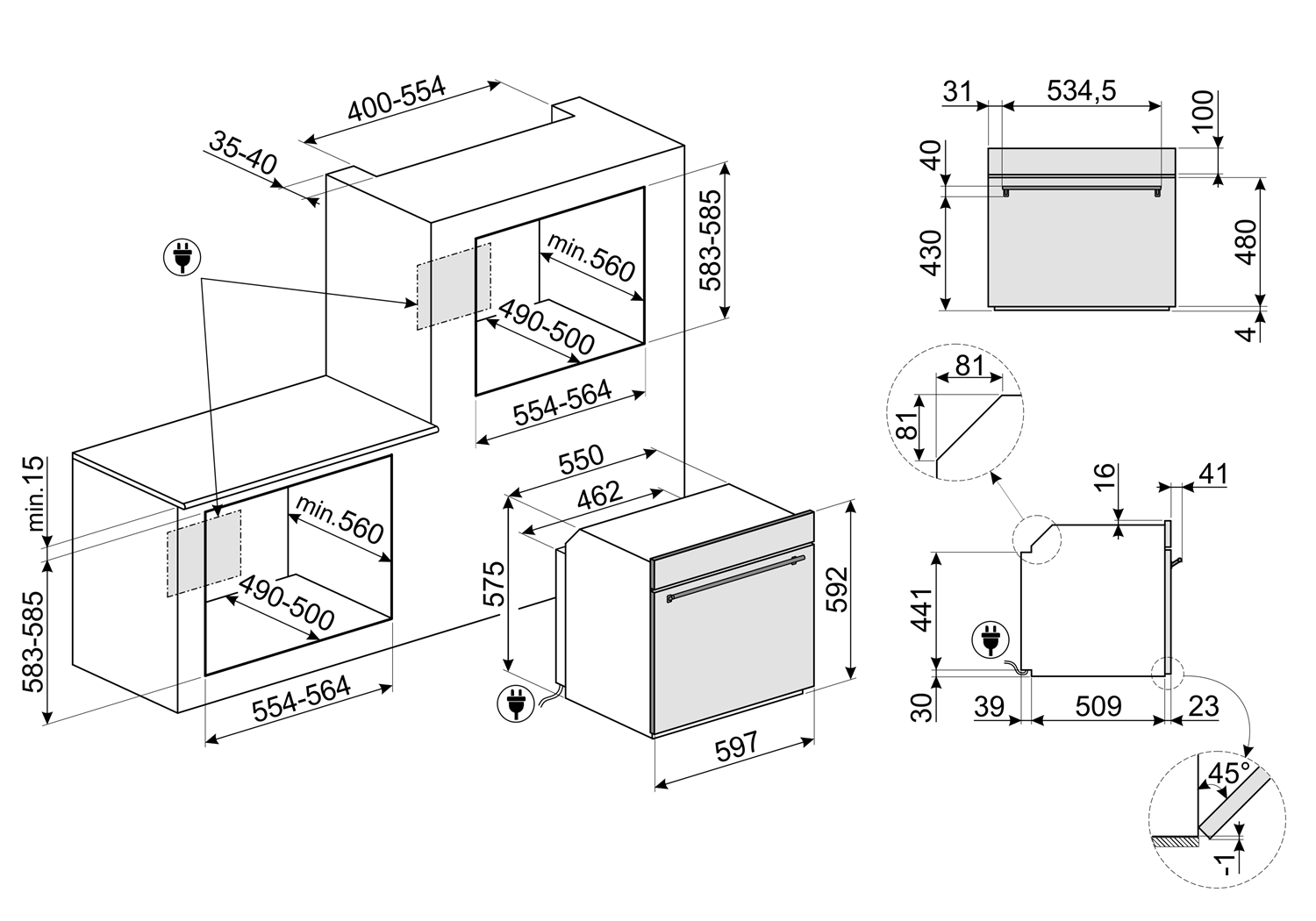 - Высота шкафа для встраивания 60 см