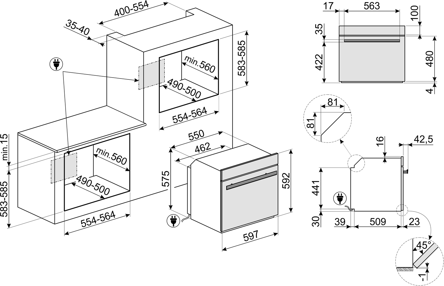 - Высота шкафа для встраивания 60 см