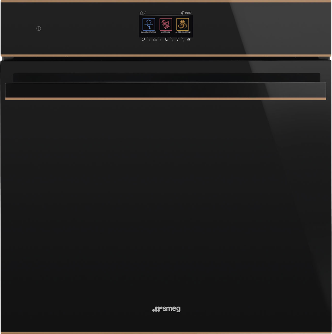 Модель принадлежит к дизайнерской коллекции Dolce Stil Novo, тип подключения — независимый. Корпус черного цвета с полностью стеклянной дверцей Eclipse и медной фурнитурой отличается роскошным дизайном. Полезный объем рабочей камеры составляет 68 литров, готовить можно на нескольких уровнях одновременно. Духовой шкаф шириной 60 см рассчитан на установку в мебельный гарнитур. Центробежная система охлаждения, тройное остекление дверцы, защитный термостат и блокировка панели управления обеспечивают безопасность в процессе готовки. Предусмотрена высокоэффективная галогенная подсветка.