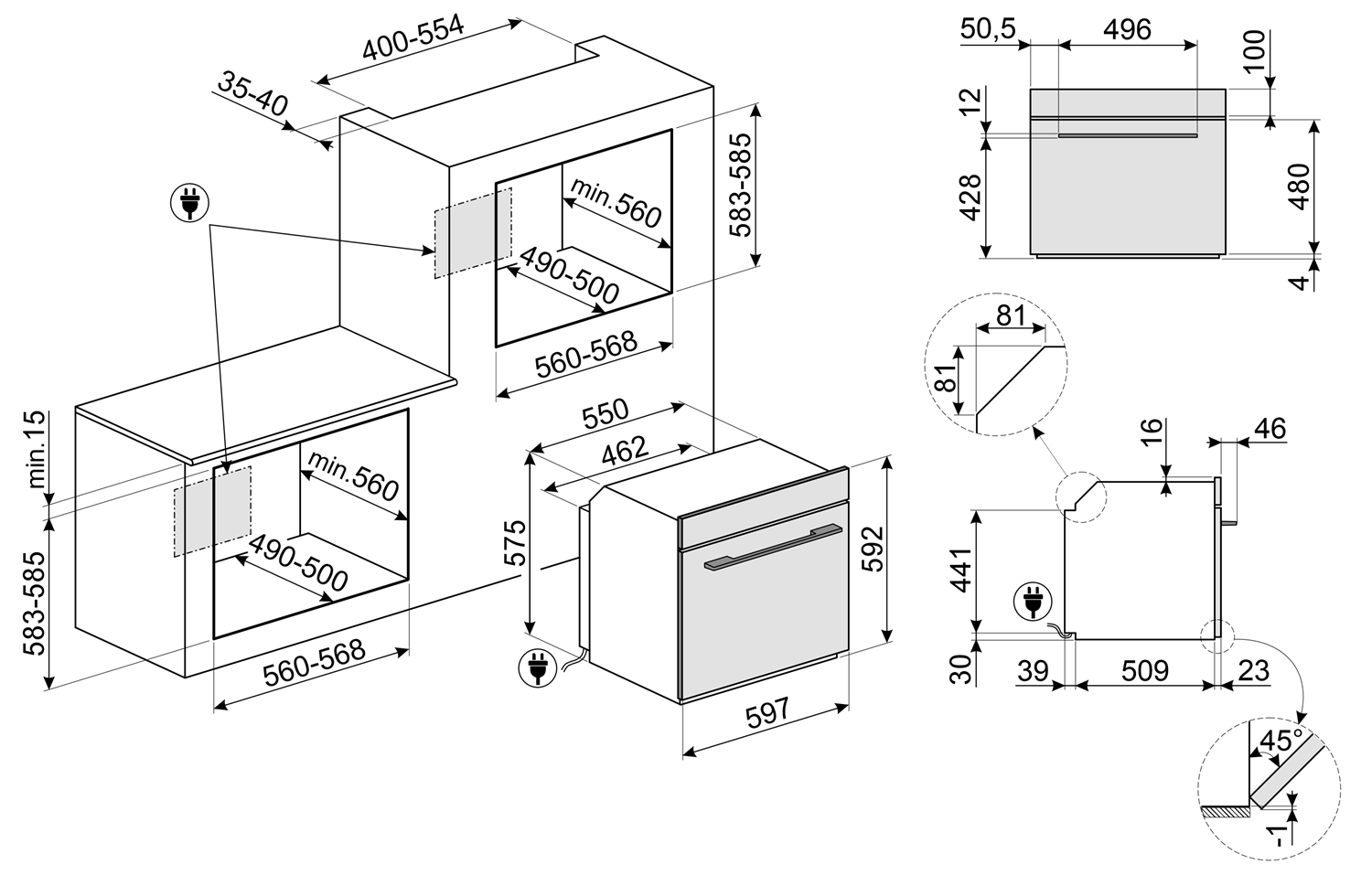 - духовые шкафы, вытяжки 60, 90 см, купольные вытяжки, газовые и электрические плиты – 200 руб./эт.;
