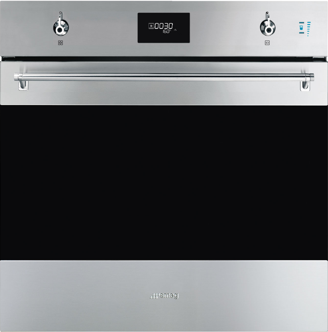 Премиальный духовой шкаф от компании SMEG имеет встраиваемый форм-фактор и может устанавливаться в кухонную мебель. Габариты устройства составляют 59,7*59,2*57,1 см, это позволяет устанавливать технику в ячейку шириной 60 см. Устройство имеет независимое подключение и выпускается в рамках дизайнерской коллекции Classica. При изготовлении применяется закаленное стекло Eclipse, нержавеющая сталь с защитой от появления отпечатков пальцев и оригинальная фурнитура из нержавеющей стали.