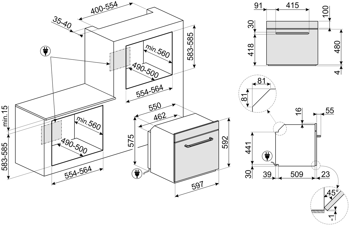 - Высота шкафа для встраивания 60 см