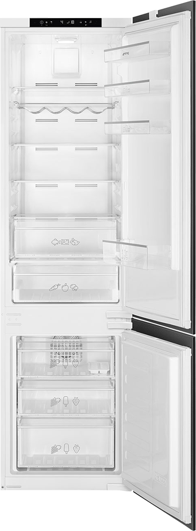 Встраиваемый холодильник от итальянского бренда SMEG имеет габариты 183,5*54*54,5 и может устанавливаться в кухонную мебель. Встраиваемый форм-фактор имеет множество преимуществ: устройство издает значительно меньше шума (всего 37 дБ), а также значительно легче очищается от пыли. При этом модель оснащается возможностью крепления фасадных панелей, которые могут идеально гармонировать как с классическим, так и с современным интерьером. Благодаря установке мощного и экономичного компрессора инверторного типа холодильник потребляет всего 262 кВт электроэнергии в год, класс энергоэффективности А++.