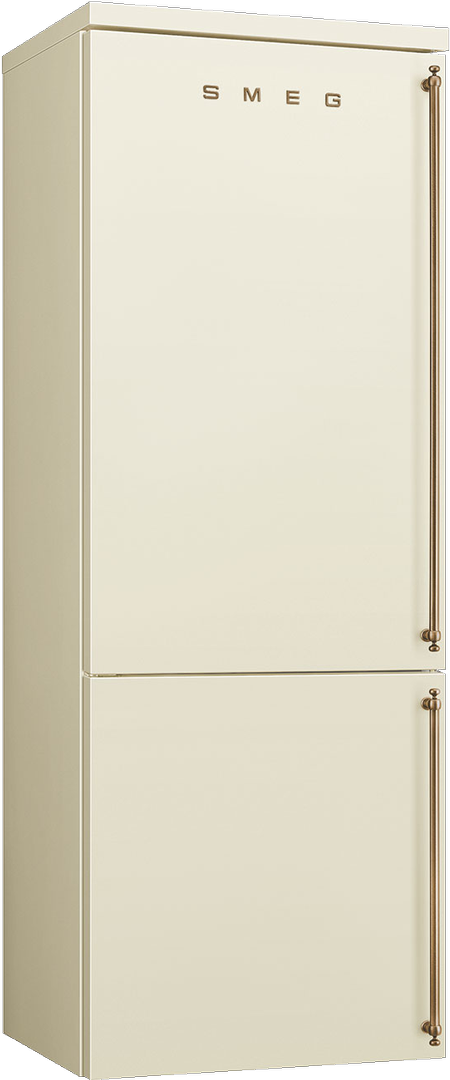 Классический холодильник выпускается итальянским брендом SMEG из качественного металла, окрашенного в кремовый цвет с применением фурнитуры бронзового цвета. Модель из дизайнерской коллекции Coloniale подойдет к большинству классических интерьеров. Габариты холодильника 195,5*70,4*70,4, а также отдельностоящий форм-фактор позволяют владельцу легко разместить технику в любом интерьере. Устройство оснащается массивной холодильной камерой на 344 литра и большим морозильником на 137 литров. Морозильное отделение размещается в нижней части корпуса.