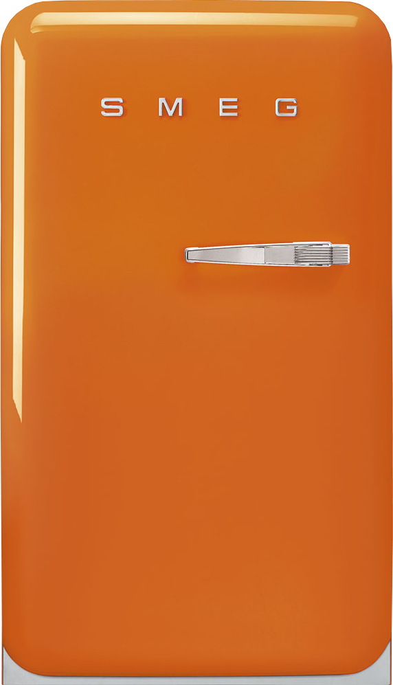 Элегантный оранжевый холодильник имеет отдельностоящий форм-фактор и может устанавливаться в различные помещения. Он имеет небольшие размеры 97*54,5*65,9 см и выполняется в рамках ретро-коллекции бытовой техники SMEG. Модель отличается стильным внешним видом и покрывается оранжевым термоформируемым полимером. Ручки и другие декоративные элементы изготавливаются из качественной хромированной стали. Модель станет отличным помощником на кухне и местом привлечения внимания благодаря премиальной отделке и яркой расцветке.