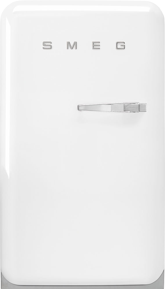 Небольшой холодильник белого цвета является неотъемлемой частью дизайнерской коллекции 50's Retro Style, разработанной дизайнерами компании SMEG и специалистами DeepDesing. Устройство оснащается стандартным компрессором, который охлаждает как холодильное отделение на 105 литров, так и морозильную камеру на 17 литров. Обе камеры скрываются за дверцей из стали, покрытой белым термоформируемым полимером. В качестве декоративных элементов используются хромированные ручка и логотип компании. Белый холодильник можно устанавливать как в светлое, так и в темное помещение в качестве контрастирующего элемента.
