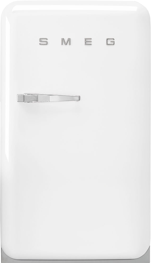 Ретро-холодильник премиум класса от компании SMEG выпускается в рамках специальной коллекции 50's Retro Style. Холодильник изготавливается из крепкого металла и покрывается термоформируемым полимерным покрытием белого цвета. Оно защищает металл от коррозии и позволяет создать действительно уникальный дизайн. Ретро-отделка подчеркивает округлые формы холодильника, применяется большое количество хрома и большой логотип компании на фасаде устройства. Данная модель имеет петли, расположенные с правой части холодильника. Между дверцей и корпусом размещается резиновый уплотнитель с антимикробными свойствами.