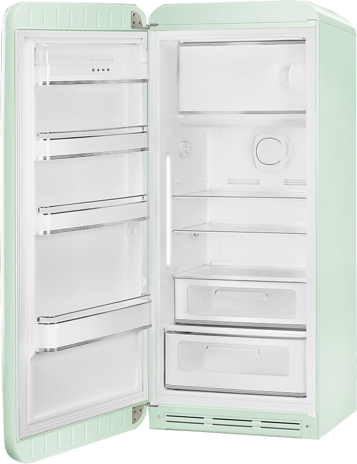 Стильный холодильник из дизайнерской коллекции SMEG 50's Retro Style станет настоящим украшением любой кухни. Техника изготавливается из премиальных материалов с использованием долговечных комплектующих. Цвет модели - пастельный зеленый, дверца изготавливается из термоформируемого полимера. Скругленный дизайн идеально подходит для ретро-интерьеров, устройства богато декорированы хромированными элементами.