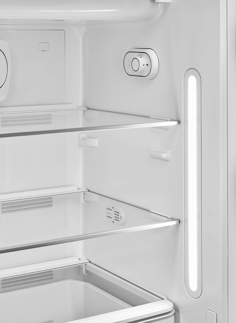 Интуитивно-понятное управление обеспечивает повышенный комфорт в процессе эксплуатации холодильника. Функция MultiFlow отвечает за равномерное распределение охлажденного воздуха в отделениях. Холодильная камера объемом 244 литра оснащена большим количеством полок, ящиков и подставок для продуктов. Есть зона свежести, где можно хранить мясо, рыбу, птицу, грибы, овощи и фрукты. В верхней части прибора предусмотрена компактная морозилка (26 литров), мощность замораживания еды составляет 2 кг в сутки. Практичная и стильная модель поможет создать на кухне теплую и уютную атмосферу середины 20-го века.
