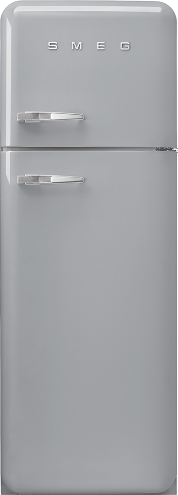 Уникальная модель двухкамерного холодильника от итальянского бренда SMEG является неотъемлемой частью дизайнерской коллекции 50's Retro Style. Серебристый холодильник легко станет украшением любой кухне, благодаря глянцевой поверхности, округлым формам и хромированной фурнитуре. Высота холодильника составляет 172 см, а ширина - всего 60,1 см. Такие размеры позволяют инсталлировать технику даже в небольшие помещения.