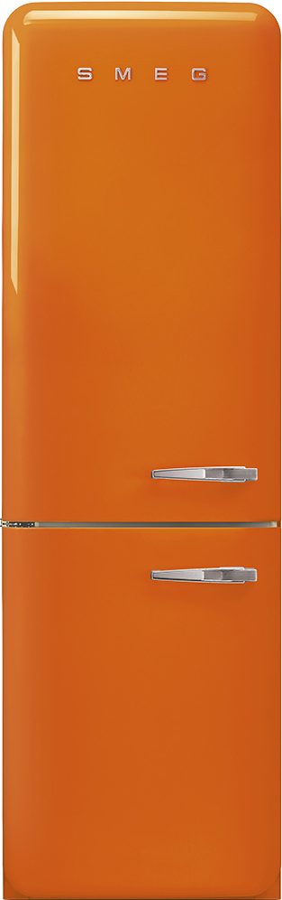 Оранжевый двухкамерный холодильник отдельностоящего типа выпускается итальянской компанией SMEG в рамках дизайнерской коллекции 50's Retro Style. Несмотря на классический внешний вид устройство оборудуется самыми современными технологиями и качественными комплектующими. Вы можете быть уверены в долговечности данного холодильника, ведь он оснащен индукционным компрессором и экологически безопасным хладагентом R600a (изобутаном). Стоит отметить, что данный холодильник оснащается передовой электроникой, которая работает с рядом датчиков. В случае повышения температуры в камерах или при забытой открытой дверце техника издаст звуковой сигнал и привлечет внимание пользователя миганием индикаторов.