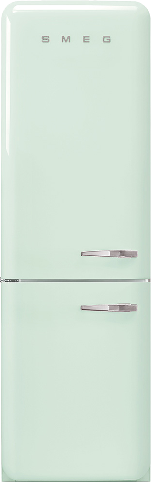 Двухкамерный зеленый холодильник выпускается в рамках дизайнерской коллекции 50's Retro Style. Серия была запущена брендом SMEG много лет назад и до сих пор является эталонной для многих дизайнеров и архитекторов. Стильный округлый корпус изготавливается из стали и покрывается термоформируемым полимером. Хромированная фурнитура дополняет элегантный дизайн холодильника. Модель имеет отдельностоящий форм-фактор. Ее размеры составляют 198,6*60,1*76,8 см, она легко установится в любую кухню.
