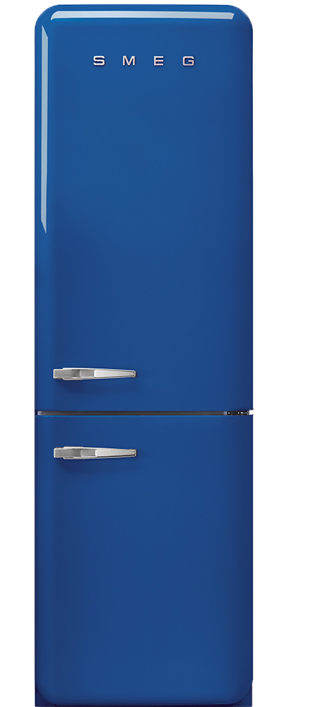 Элегантный холодильник из дизайнерской серии SMEG 50's Retro Style выполнен в синем цвете с применением термоформируемого полимера, покрывающего металлический корпус. На фасадной панели размещаются 2 хромированные ручки и стильный логотип компании. Инженеры итальянского бренда придали устройству ретро внешний вид, но при этом оснастили его современными техническими решениями. Внутри камеры реализовано светодиодное LED-освещение, а уникальная система "Полный No-Frost" охлаждает все отсеки холодильника без необходимости размораживания. Данная система работает за счет циркуляции холодного воздуха и удаления влаги специальным нагревателем, который работает по сигналу датчика оттайки.