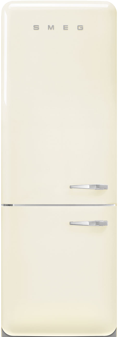 Модель премиум-класса выпускается в рамках линейки Стиль 50-х. Двухкамерный холодильник SMEG станет ярким акцентом любой классической кухни. Глянцевая отделка подчеркивает эксклюзивный дизайн прибора с корпусом кремового цвета. Дверные упоры расположены с левой стороны. Нижняя морозильная камера на 137 литров оснащена ручным льдогенератором. Скорость замораживания продуктов составляет 8 кг/сутки. Холодильное отделение объемом 344 литра отличается продуманным зонированием. В нем есть много полок, контейнеров и подставок для размещения еды и напитков. Светодиодная подсветка облегчает поиск предметов и уход за техникой.