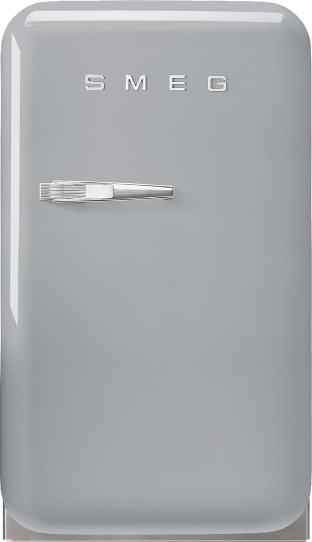 Компактный холодильник серого цвета станет незаменимым помощником не только на кухне, но и в других частях дома. Данную модель в стиле "Ретро" можно установить в гостиной, кабинете или в домике для гостей. Она выполнена из качественных материалов: металла, покрытого термоформируемым полимером, безопасного пластика, а также хромированных декоративных элементов. Ручка располагается в левой части корпуса, на лицевой панели размещается большой логотип компании SMEG.