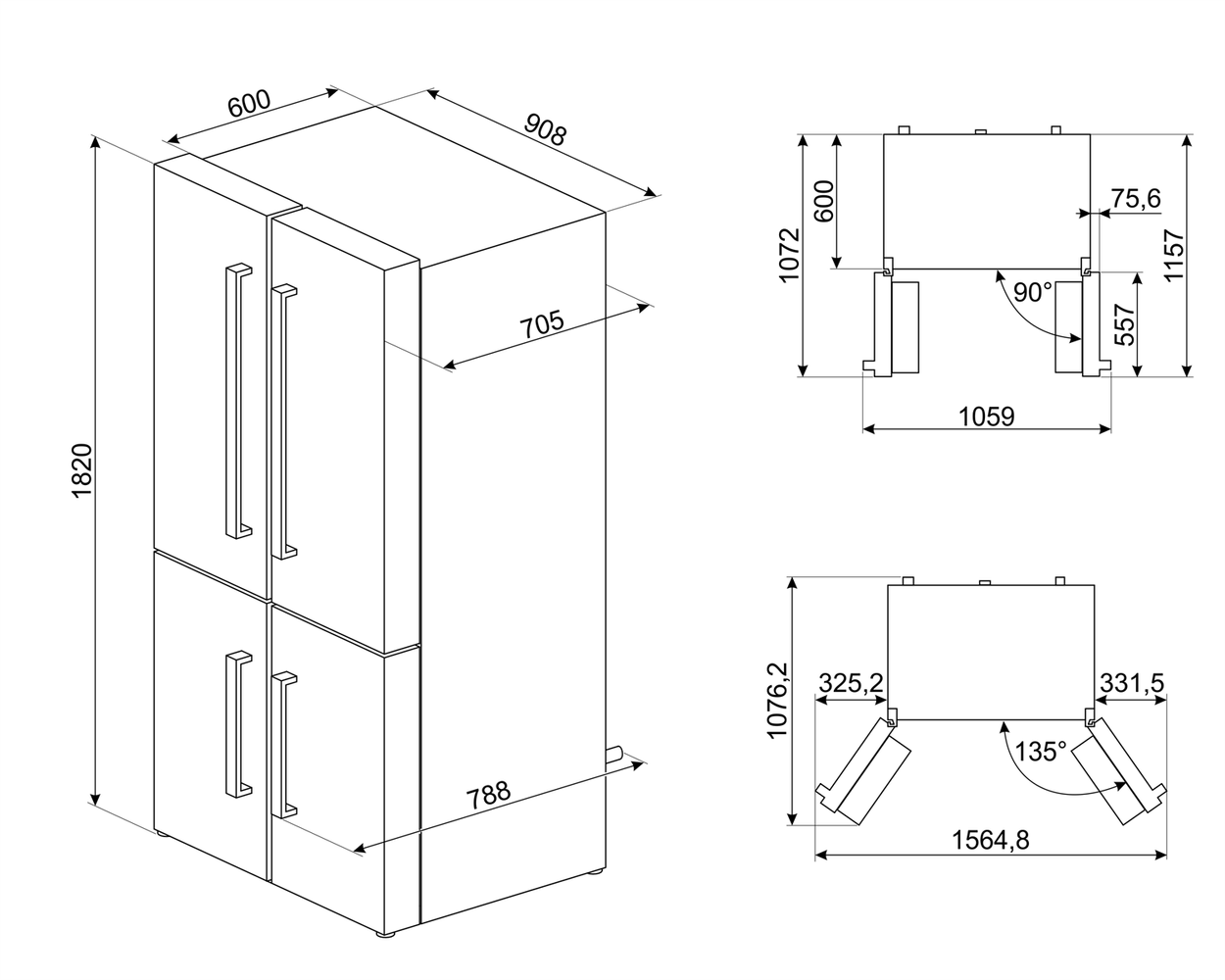 Размеры (В х Ш х Г): 1820 х 908 х 708 мм