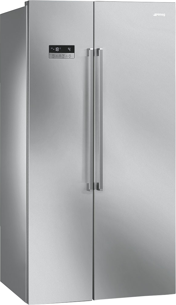 Уникальный холодильник форм-фактора Side-by-Side производится итальянской компанией SMEG из качественной нержавеющей стали, которая имеет защитное покрытие против отпечатков пальцев. Устройство выполнено в современном стиле, но отлично подойдет и нейтральным интерьерам.