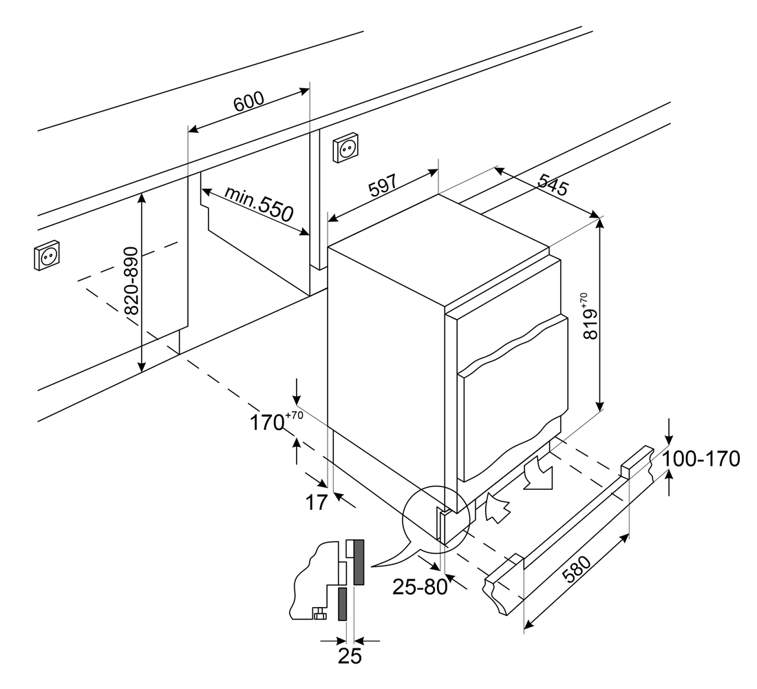 Ширина с дверцей, открытой на 90° (мм): 777 мм