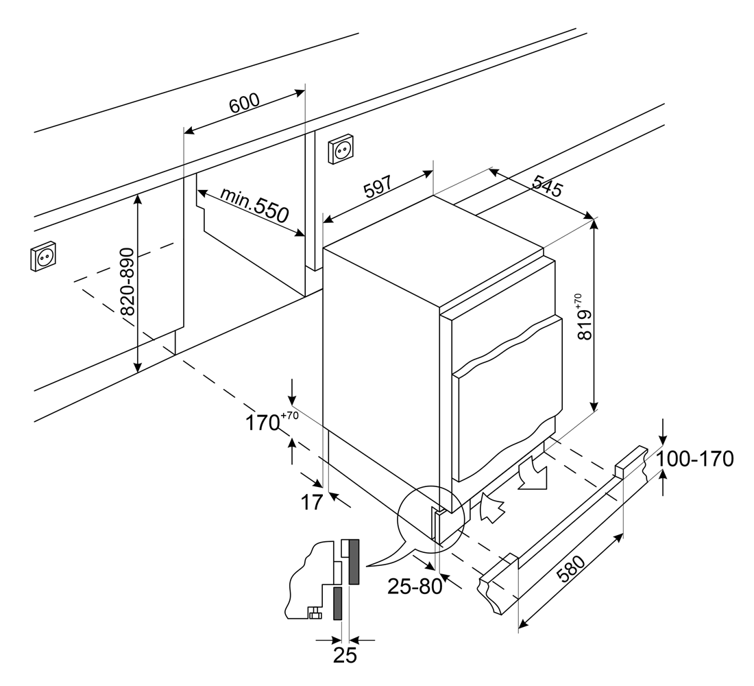Ширина с дверцей, открытой на 90° (мм) 777 мм