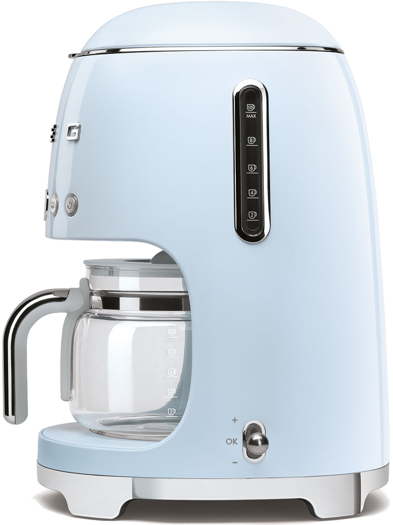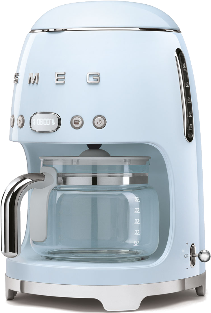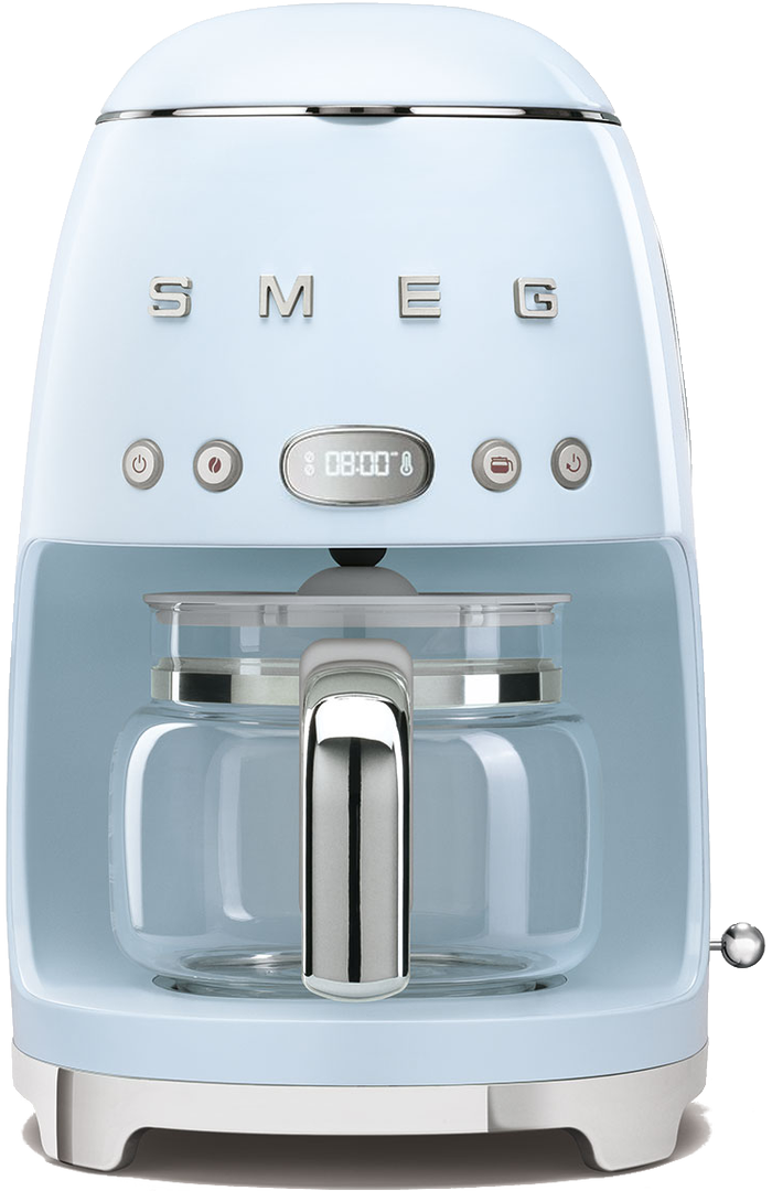 Эта кофемашина выделяется даже среди оригинальных моделей Smeg ее пастельный голубой цвет будет особенно хорошо смотреться в интерьерах в стиле прованс. Модель мощностью 1050 Вт имеет резервуар воды на 1,4 литра, удобную панель управления с часами и LED-дисплеем. Одной заправки резервуара достаточно для приготовления десяти стандартных чашек кофе.
