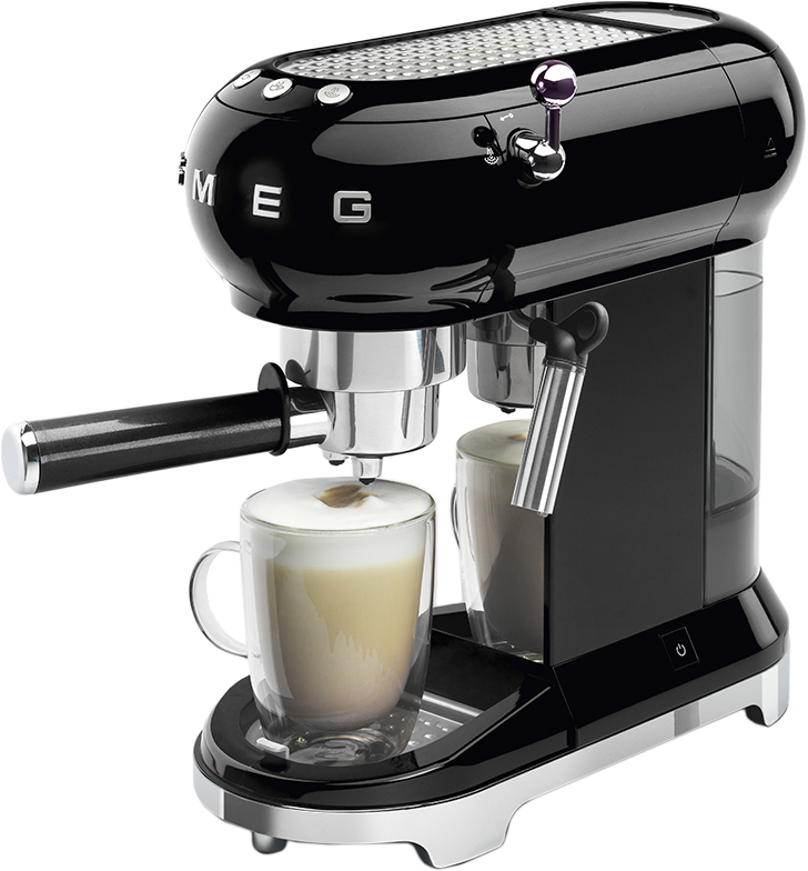 Модель кофеварки выполнена в винтажном стиле 50-х годов, что позволяет ей отлично смотреться в интерьере кухни, а также на стойке бара в кафе или ресторане. Она сможет быстро приготовить одновременно две чашки обычного кофе, эспрессо или, к примеру, латте макиато. Также предусмотрен встроенный капучинатор с регулятором из нержавеющей стали. Он предназначен для вспенивания молока и создания деликатной воздушной пенки. Модель рассчитана на использование молотого кофе или специальных кофейных чалд. Емкость резервуара для воды составляет 1 литр, чего вполне достаточно, чтобы приготовить несколько порций напитка, а высота дозатора подачи кофе позволяет размещать чашки и стаканы различных размеров. Управление всеми функциями кофемашины осуществляется при помощи простой и понятной кнопочной панели.