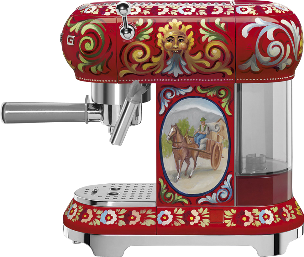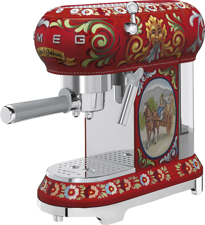 Эта модель обойдется вам немного дороже, чем остальные рожковые кофемашины в стиле 50-х, ведь ее расписной корпус был разработан в союзе со знаменитыми дизайнерами Dolce & Gabbana. Невероятно яркая кофемашина, украшенная рисунками и цветочным орнаментом, способна стать изюминкой кухни, а ее функционала вполне достаточно для большинства любителей кофе.