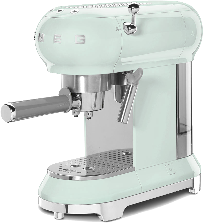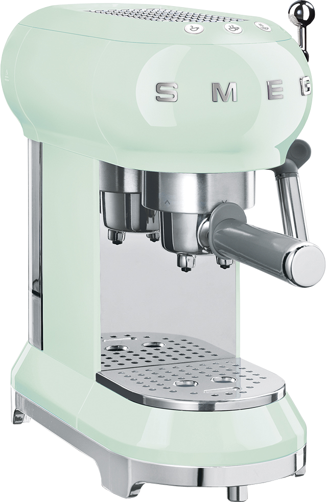Эта кофемашина — хорошее решение для интерьеров в стиле ретро, поскольку ее корпус и панель управления выполнены в стиле 50-х годов. Модель относится к рожковому типу, так что использует молотый кофе. У нее достаточно большая съемная емкость для воды — на 1 литр, три фильтра, мерная ложка с темблером для трамбовки кофе. Холдер, рамка и поддон для чашек изготовлены из долговечной нержавеющей стали. Корпус окрашен в приятный зеленый цвет. Для удобства владельцев модель имеет лоток для латте макиято.