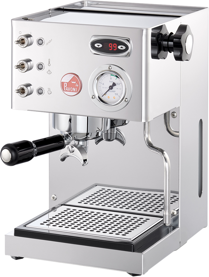 Рожковая кофеварка оснащена интуитивно-понятным управлением. Через измельченные зерна кофе проходит не горячая вода, а пар под большим давлением. Встроенный бойлер гарантирует быстрый подогрев воды. Вибрационная помпа с манометром поддерживает давление до 15 Бар. Индикация уровня жидкости, световой индикатор температуры, съемный контейнер и специальная насадка для горячей воды обеспечивают комфортную и безопасную эксплуатацию прибора. Модель с глянцевой отделкой цвета хром отлично впишется в интерьер любой современной кухни.