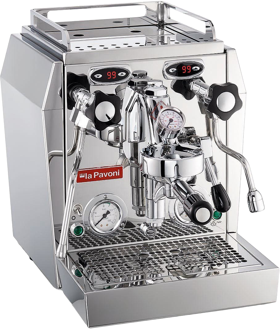 Стильная кофемашина станет настоящим украшением любой кухни благодаря элегантному корпусу из нержавеющей стали и хромированной фурнитуры в стиле Giotto. Она подойдет к самым разнообразным интерьерам и легко разместится на столе, столешнице или кухонном островке. Пользователь может применять двойной парогенератор, который обеспечивает быстрое приготовление напитка. Объем емкости для воды составляет 3 литра, а само устройство имеет опцию подключения к водопроводу. PID-регуляторы температуры кофе и пара позволяют получить максимальное качественный продукт необходимой температуры. В случае недостаточного количества воды устройство заблаговременно предупредит пользователя.