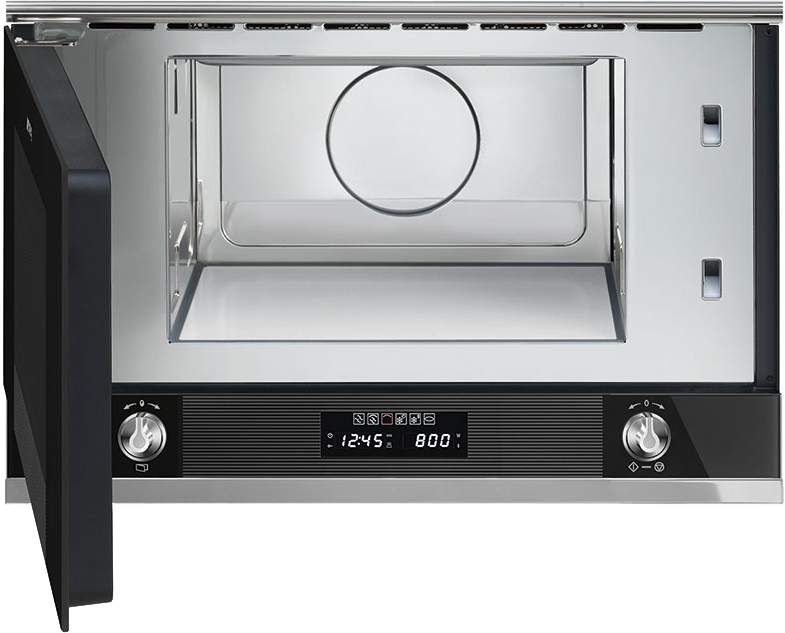 Компактная встраиваемая микроволновая печь из серии Linea. Ширина прибора 60 см, а высота всего 39 см. Полезный объем камеры составляет 22 л. Фасад выполнен из черного стекла, на панели управления размещены поворотные переключатели с подсветкой и два LED дисплея для отображения рабочих параметров. Электронный программатор дает возможность контролировать температуру приготовления, настраивать функции таймера. По окончании работы прибор издает звуковой сигнал.
