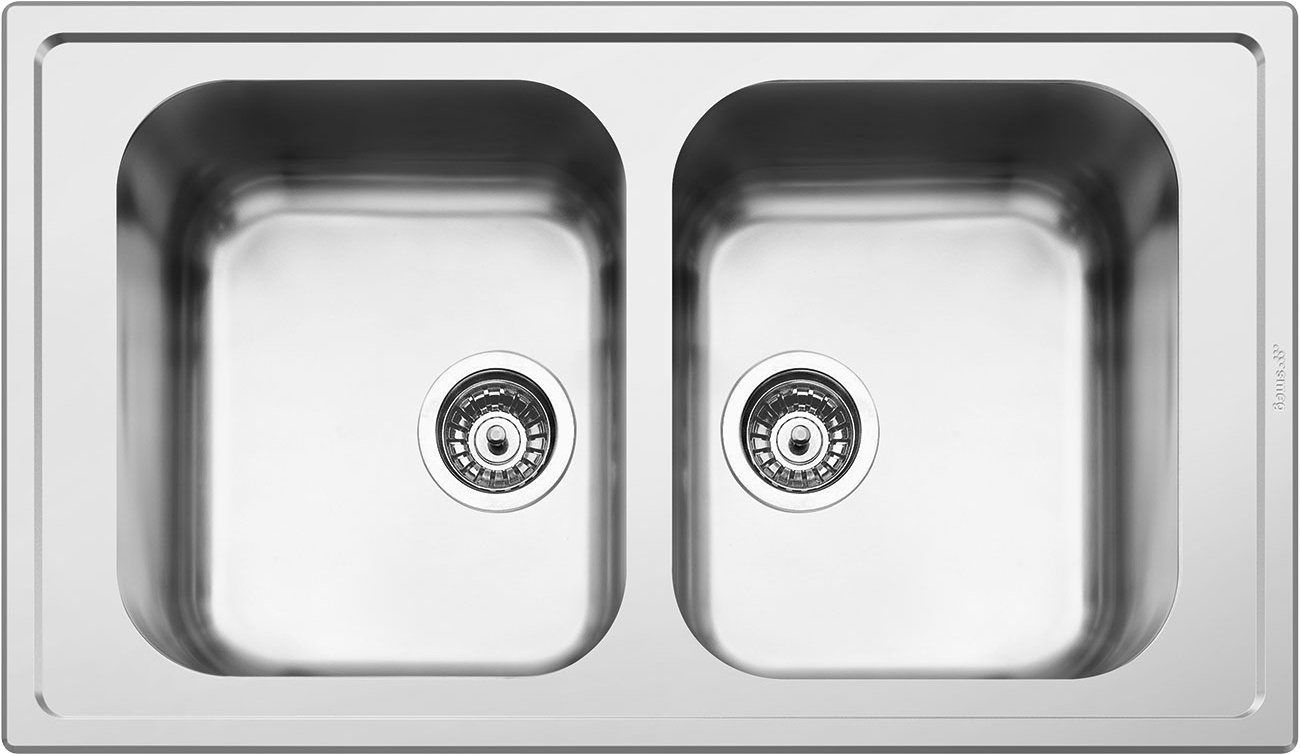 Необорачиваемая мойка от SMEG станет стильным и функциональным дополнением любой современной кухни. Модель сделана в Италии из высококачественной нержавеющей стали толщиной 0,7 мм. Этот металл отличается долговечностью, устойчивостью к различным химическим и физическим воздействиям, высоким уровнем гигиены. За поверхностью из нержавейки очень просто ухаживать с помощью обычных моющих средств. Две просторных чаши одинакового размера (400х340 мм) позволяют выполнять несколько операций одновременно, например мыть посуду и размораживать продукты.