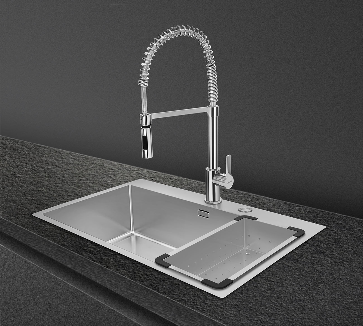 Аксессуары для монтажа в комплекте: Корзинчатый вентиль, Сифон с возможностью подключение посудомоечной машины, Фиксирующие зажимы, Клапан-автомат с кнопкой управления