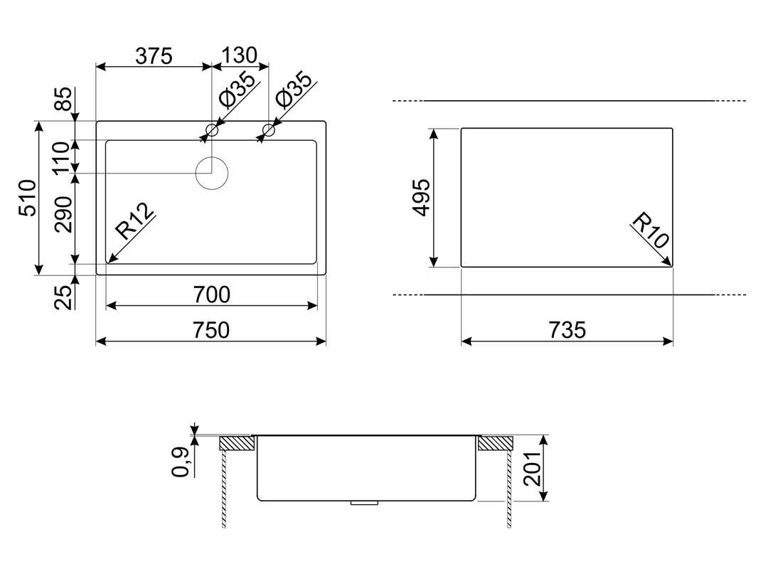 Необорачиваемая мойка от SMEG рассчитана на установку вровень со столешницей (с бортиком 1 мм). Монтаж осуществляется при помощи 11 фиксирующих зажимов. Размеры выреза в столешнице составляют 735x495 мм. Клапан-автомат с кнопкой управления обеспечивает быстрый слив грязной жидкости. В комплекте поставляются оригинальные аксессуары: корзинчатый вентиль, сифон с опцией подключения посудомоечной машины, крепежи, встроенный плоский сливной комплект. Универсальный дизайн данной модели из основной линейки позволяет ей гармонично вписаться в любой современный интерьер.