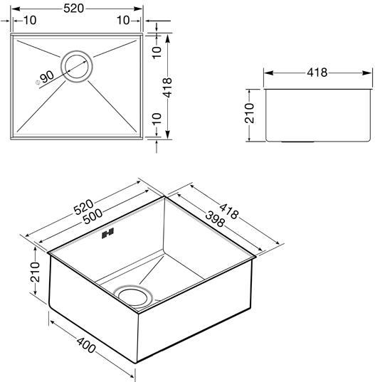 Габариты модели (520х418х210 мм) идеально подходят для установки в базу шириной 60 см. Отсутствие крыла делает мойку компактной и позволяет сэкономить место на столешнице для установки мелкой бытовой техники. А если вы захотите иметь место для размораживания продуктов, можно просто заказать себе корзину.
