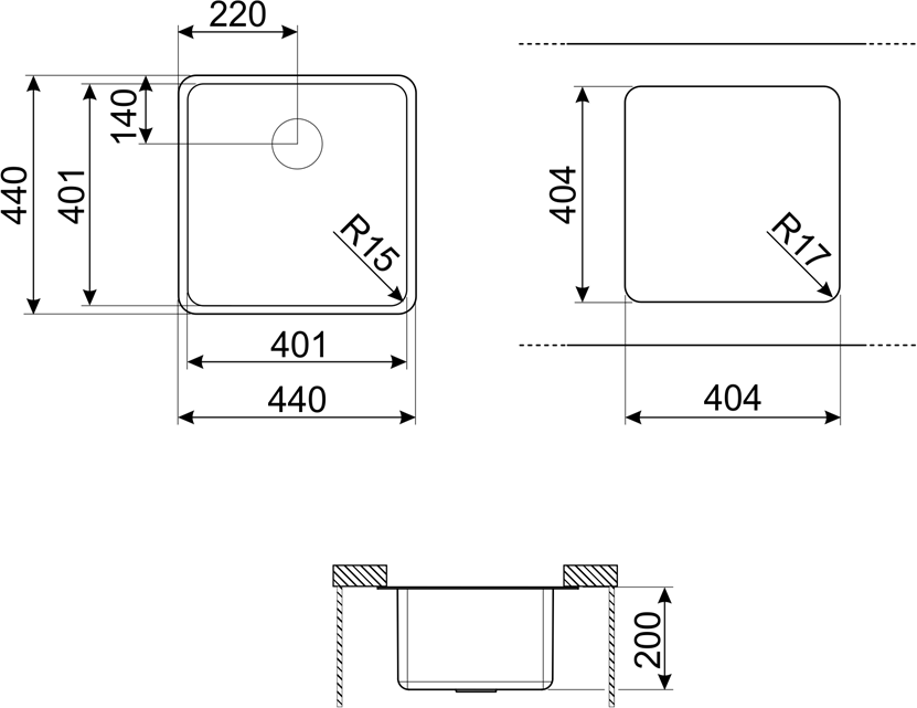 Габариты мойки 440 x 440 x 200 мм позволяют размещать ее как в небольших, так и в просторных помещениях. Стоит отметить, что чаша имеет размеры 400 x 400 x 200 мм, а радиус ее закругления составляет 15 мм. Для удобства эксплуатации модель оснащается системой скрытого перелива, в комплекте с техникой поставляет сифон, к которому можно подключать стиральную или посудомоечную машину. Чаша производится методом штамповки и имеет толщину 1 мм, что позволяет ей выдерживать серьезные нагрузки.