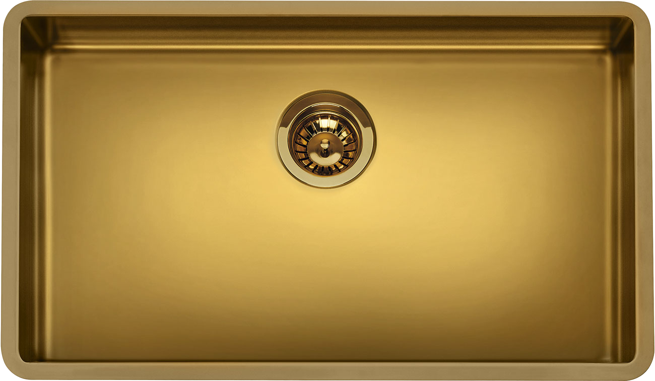Прямоугольная мойка с 1 чашей латунного цвета имеет роскошный дизайн. Модель из серии Mira производится в Италии из высококачественной нержавеющей стали марки AISI304. Металл устойчив к коррозии, различным химическим и физическим воздействиям. Штампованная чаша с радиусом закругления 15 мм обеспечивает комфортную эксплуатацию. В ней очень удобно мыть посуду или размораживать продукты пред готовкой. Габариты чаши 710x400x200 мм, толщина стали составляет 1 мм, вес изделия — 5,2 кг. Матовое PVD-покрытие обеспечивает раковине дополнительную защиту от агрессивных факторов окружающей среды.