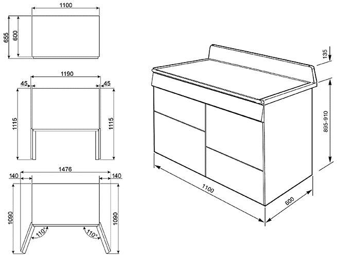 - Ширина 110 см