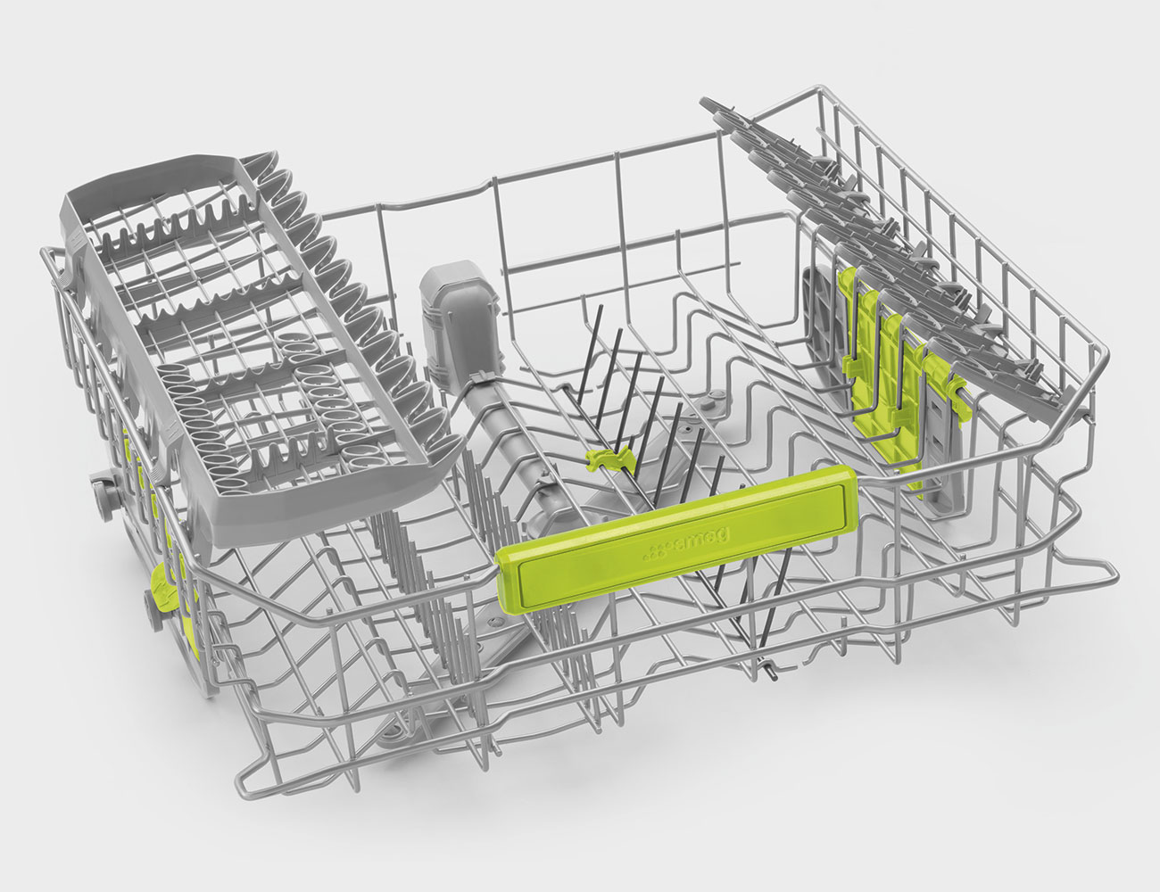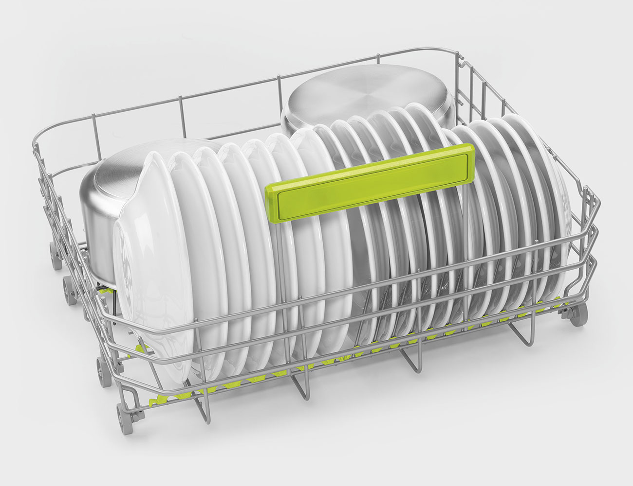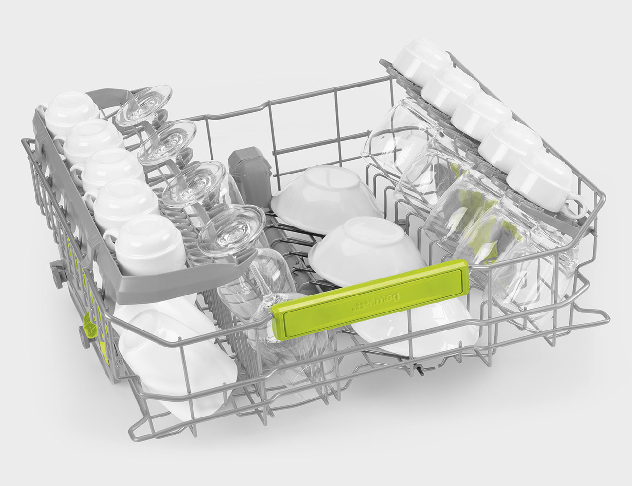 Модель производится в Италии из долговечных и экологически чистых материалов. Встраиваемая посудомойка рассчитана на интеграцию в кухонный гарнитур. Рабочая камера из нержавеющей стали отличается большой вместительностью, в нее помещается 13 стандартных комплектов посуды. Верхняя корзина регулируется по высоте (3 уровня), она оснащена удобным держателем для бокалов. Нижняя корзина с 2 складными полками и системой Rompi-Goccia обеспечивает эффективное удаление загрязнений и ускоренную сушку кухонной утвари. Предусмотрен специальный отсек для столовых приборов.