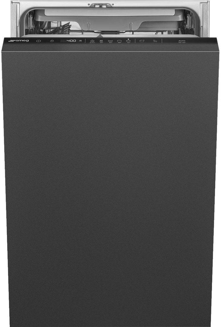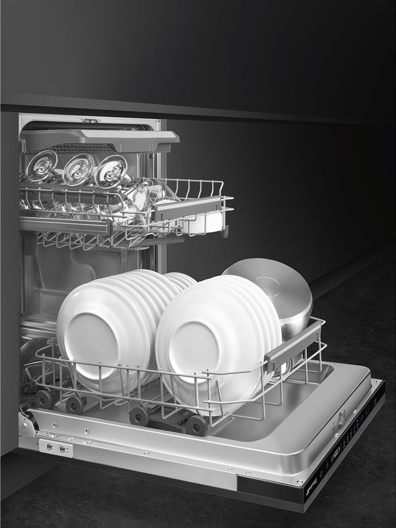 Компактная посудомоечная машина от итальянского бренда SMEG имеет ширину в 44,6 см. Благодаря встраиваемому форм-фактору данную машину можно легко устанавливать в корпусную мебель. Модель предназначена для мойки 10 полных комплектов посуды и подходит для размещения в небольших кухнях.