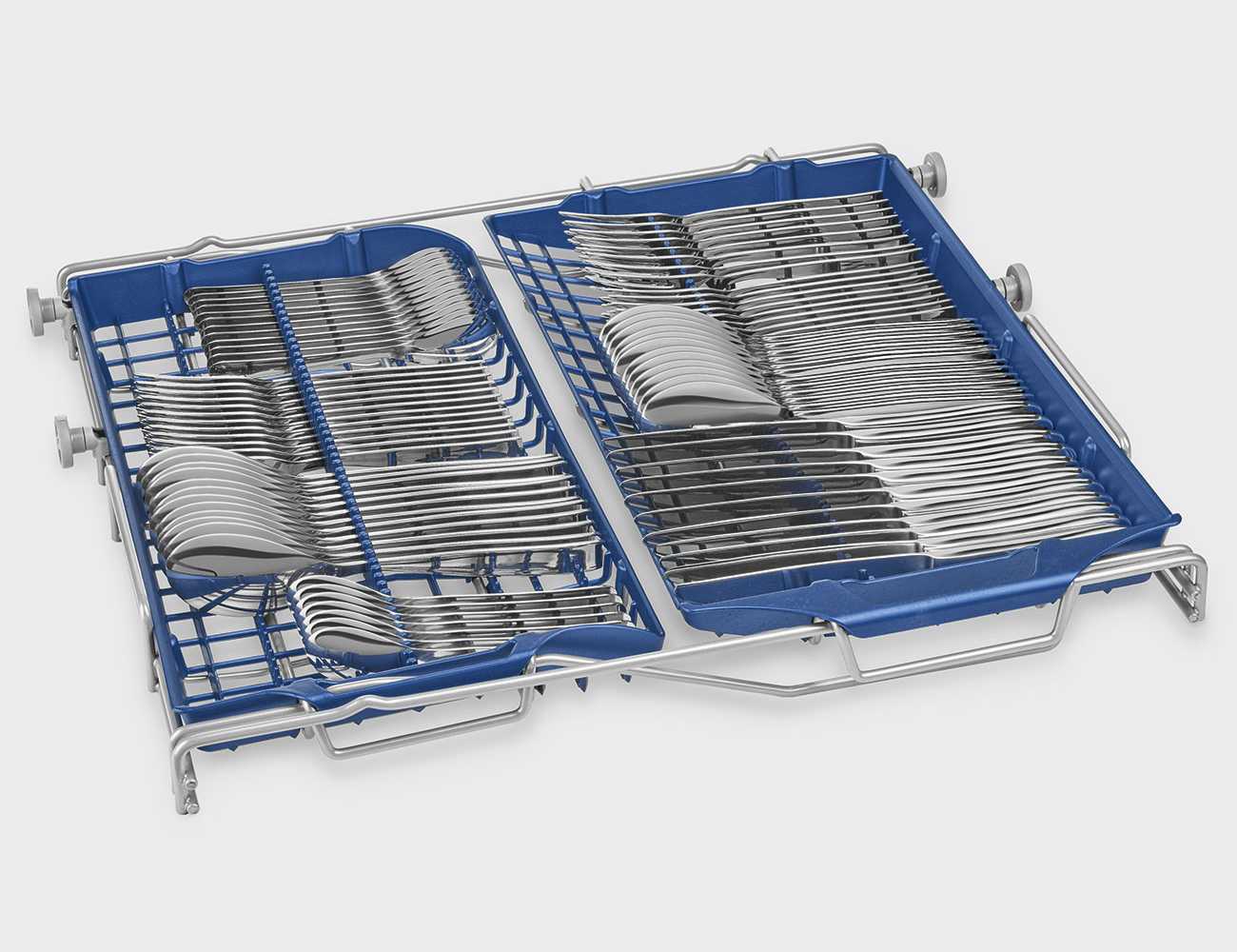 Управлять посудомоечной машиной очень просто при помощи сенсорной панели с цифровым дисплеем. Поддерживается 11 автоматических программ мойки, разработанных с учетом особенностей разных материалов и степени их загрязнения. Есть световая индикация наличия соли и ополаскивателя, а также времени до конца цикла. Предусмотрен специальный отсек для столовых приборов. Естественная конденсационная сушка обеспечивает удаление капель с поверхности посуды. Отложенный старт позволяет запланировать запуск мойки с отсрочкой до 24 часов. Технология Aquastop надежно защищает от протечек.