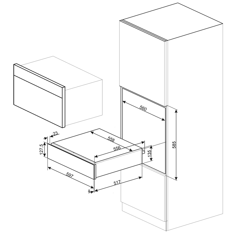 Эта серебристая модель имеет достаточно скромные габариты — 135х597х538 мм, но ее внутренний объем составляет 21 л, а максимальная загрузка — целых 15 кг. Шкаф для подогрева посуды может быть почти незаметным в интерьере кухни, поскольку на его передней панели нет ручки. Открытие осуществляется с помощью легкого нажатия — эта система называется Push.