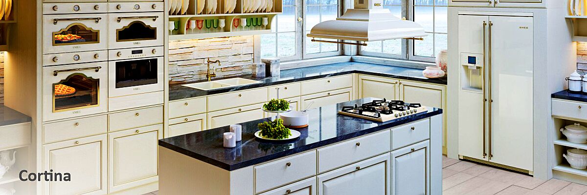 Дизайнерская линейка Cortina Smeg напоминает нам о том, какой была бытовая техника в начале прошлого века, когда многие элементы изготавливались вручную. Оборудование разработано в сотрудничестве с кузнечных дел мастером Giancarlo Candeago. В серию вошли варочные панели, духовые шкафы, микроволновые печи, вытяжки, кухонные мойки, смесители и сменная фурнитура.