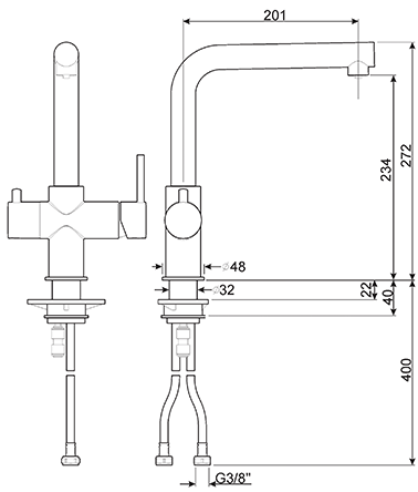 Этот смеситель высотой 234 мм сразу обращает на себя внимание необычной конструкцией: справа у него располагается обычный рычаг для управления напором и температурой водопроводной воды, а слева — еще один, меньшего размера. Дополнительный рычаг предназначен для подачи фильтрованной воды. Это серьезное преимущество — вы сможете неплохо сэкономить на покупке бутилированной столовой воды для приготовления пищи. Фильтры устанавливаются под столешницей, так что она не будет загромождена кувшинами или банками для отфильтрованной воды.